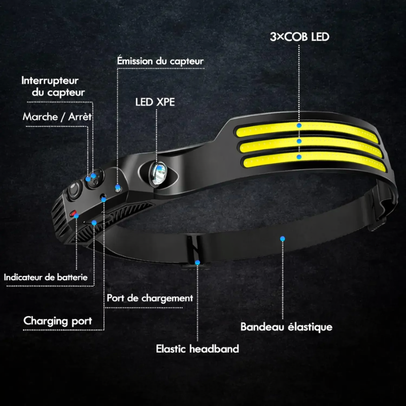 ✅ 1 Lampe frontale LED COB rechargeable avec capteur de mouvement