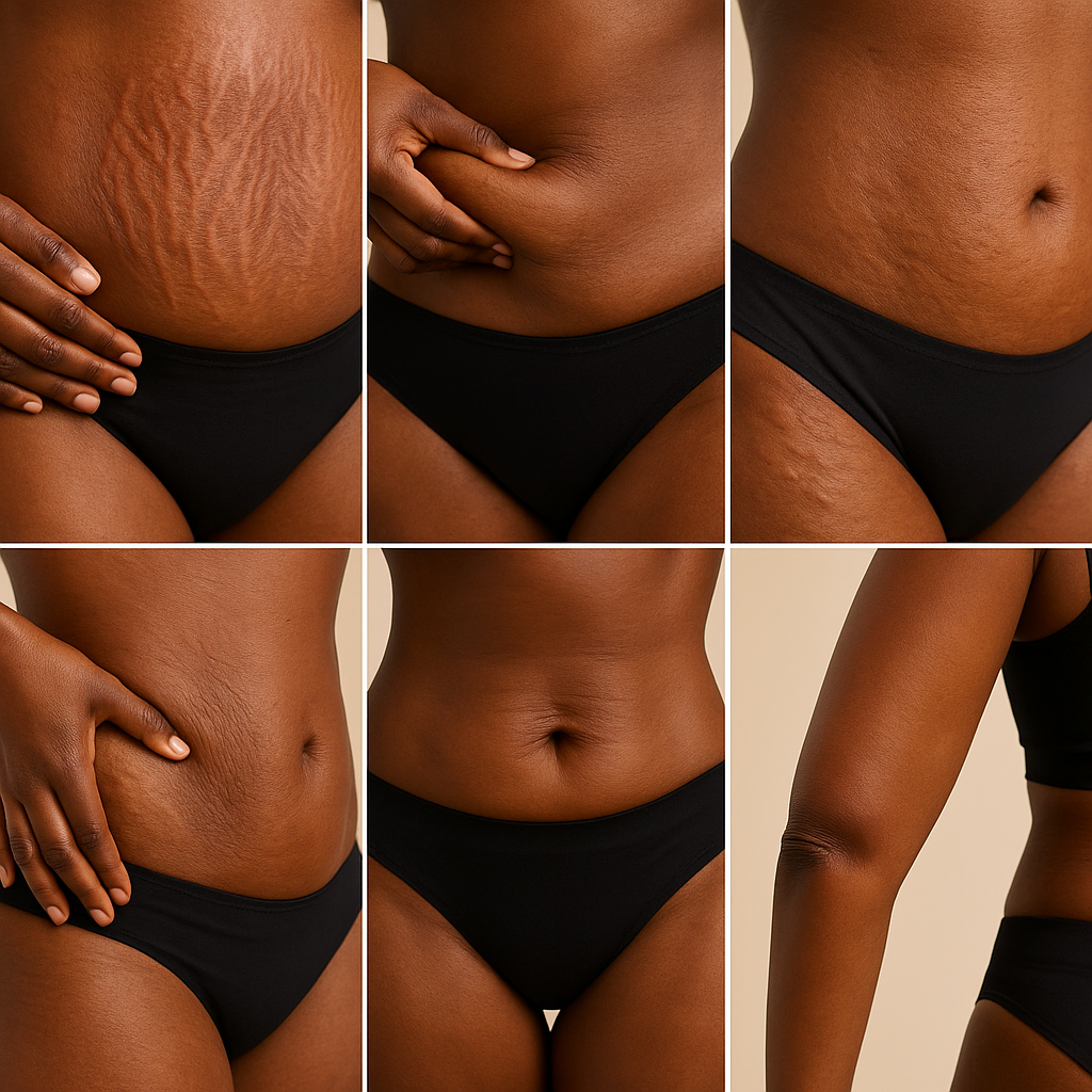 Semaine 4+ : Vergetures atténuées, peau visiblement plus lisse et tonique